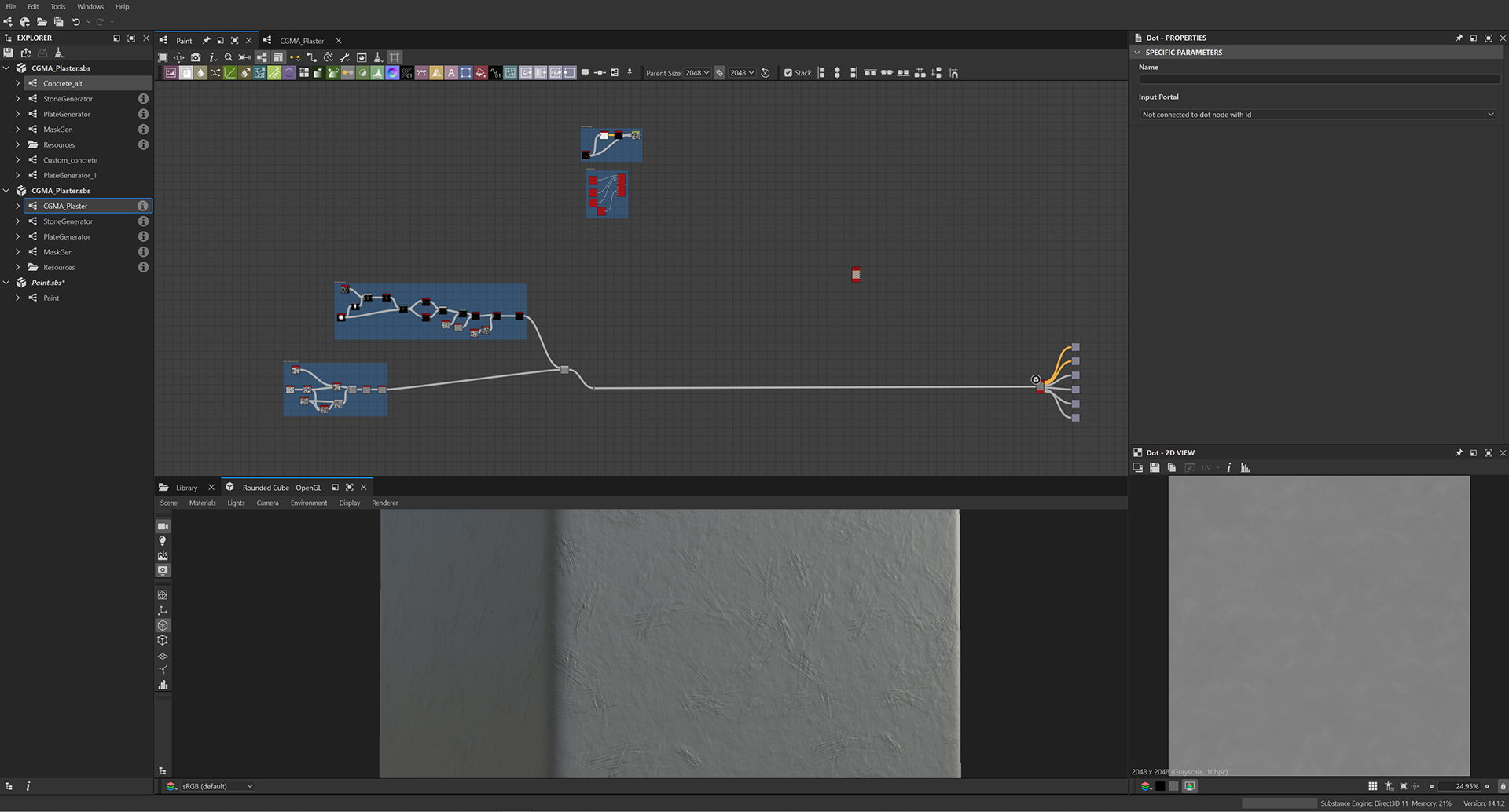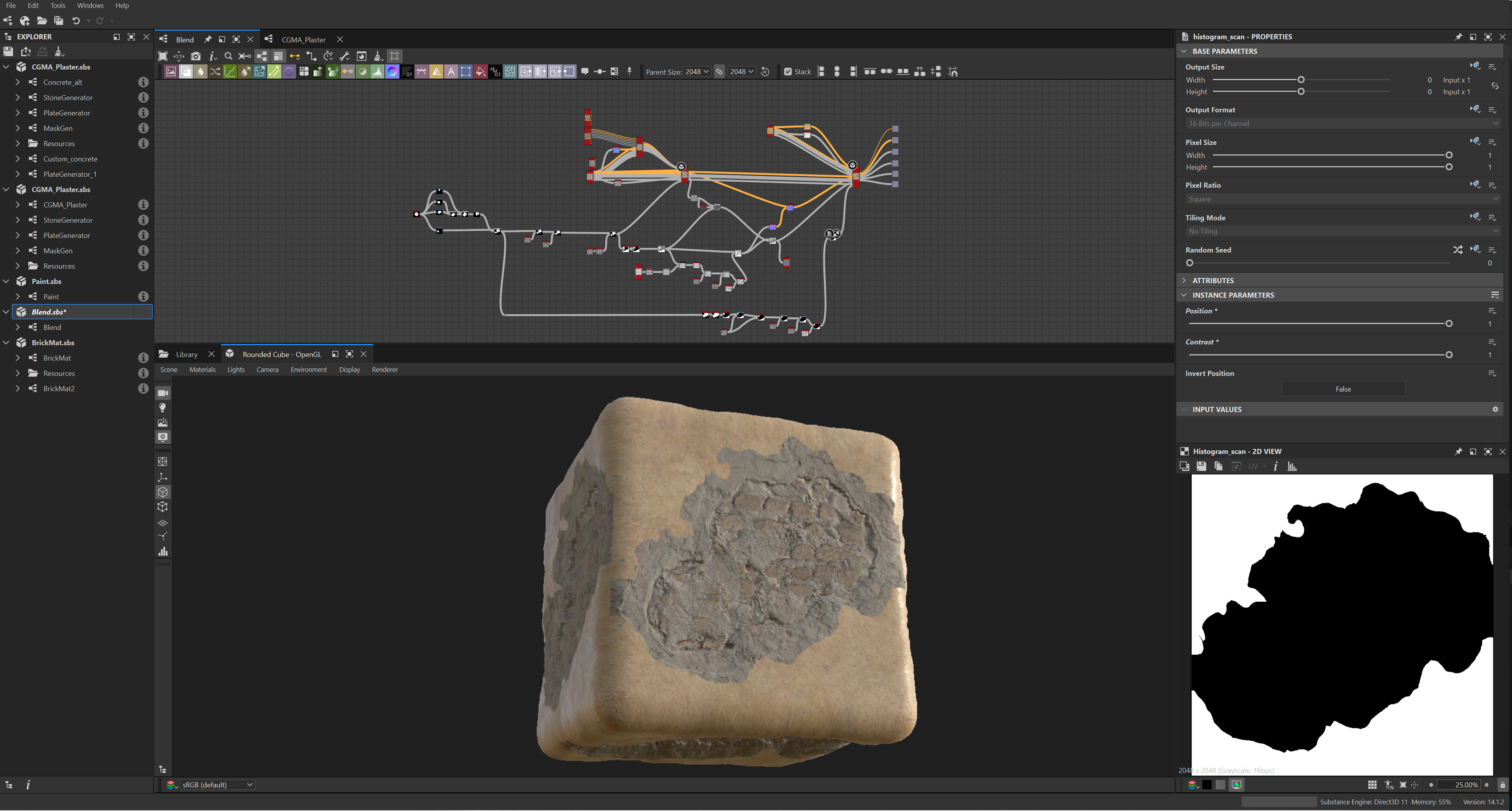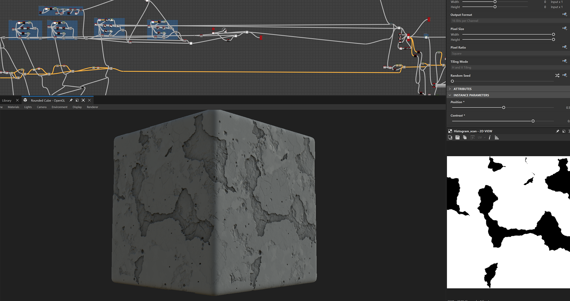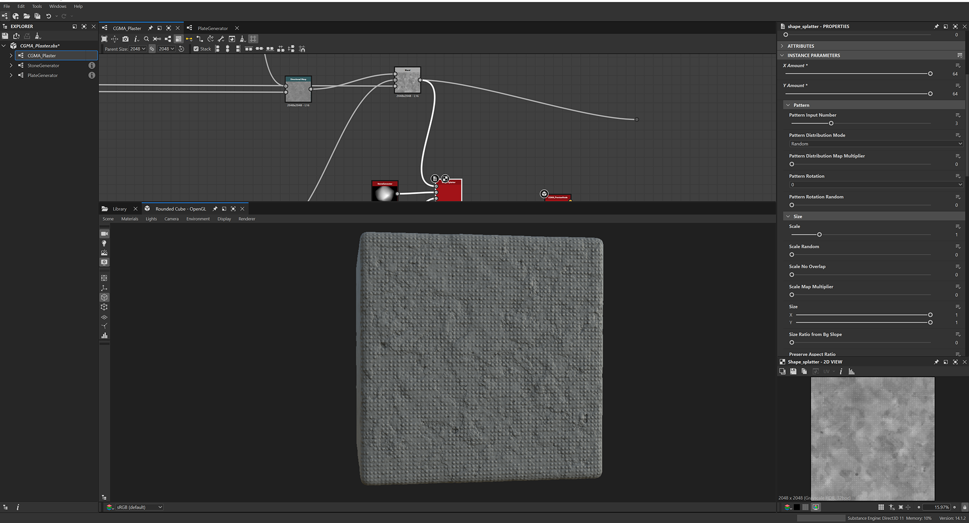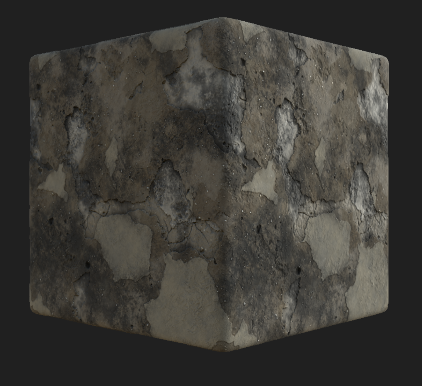 Week 1: Initial layers developed and captured via Substance Designer. The target for this initial set was inspired by Thai temple ruins, which are characterized by flaking/ layered concrete, brick, and plaster. Experimentation surrounded creating these targets and testing the limits of the tools.