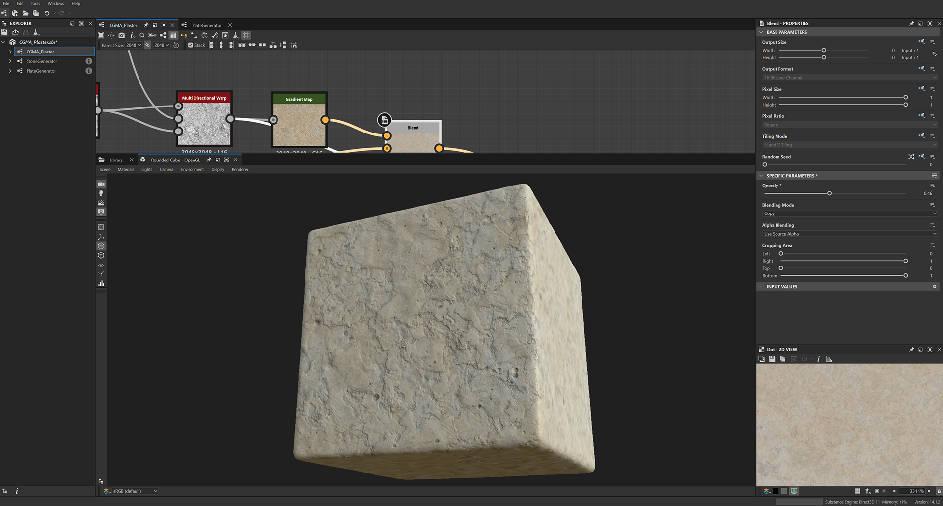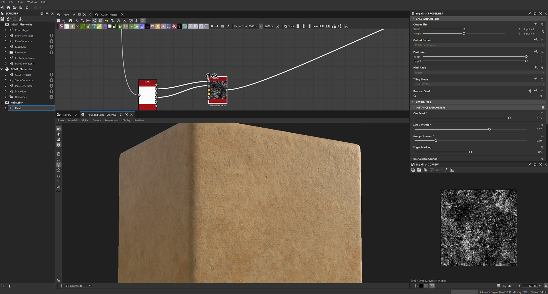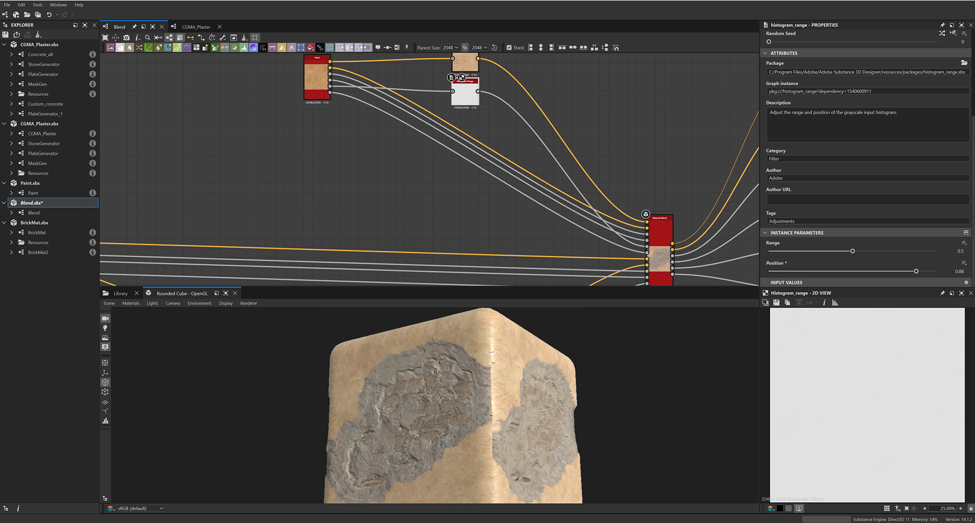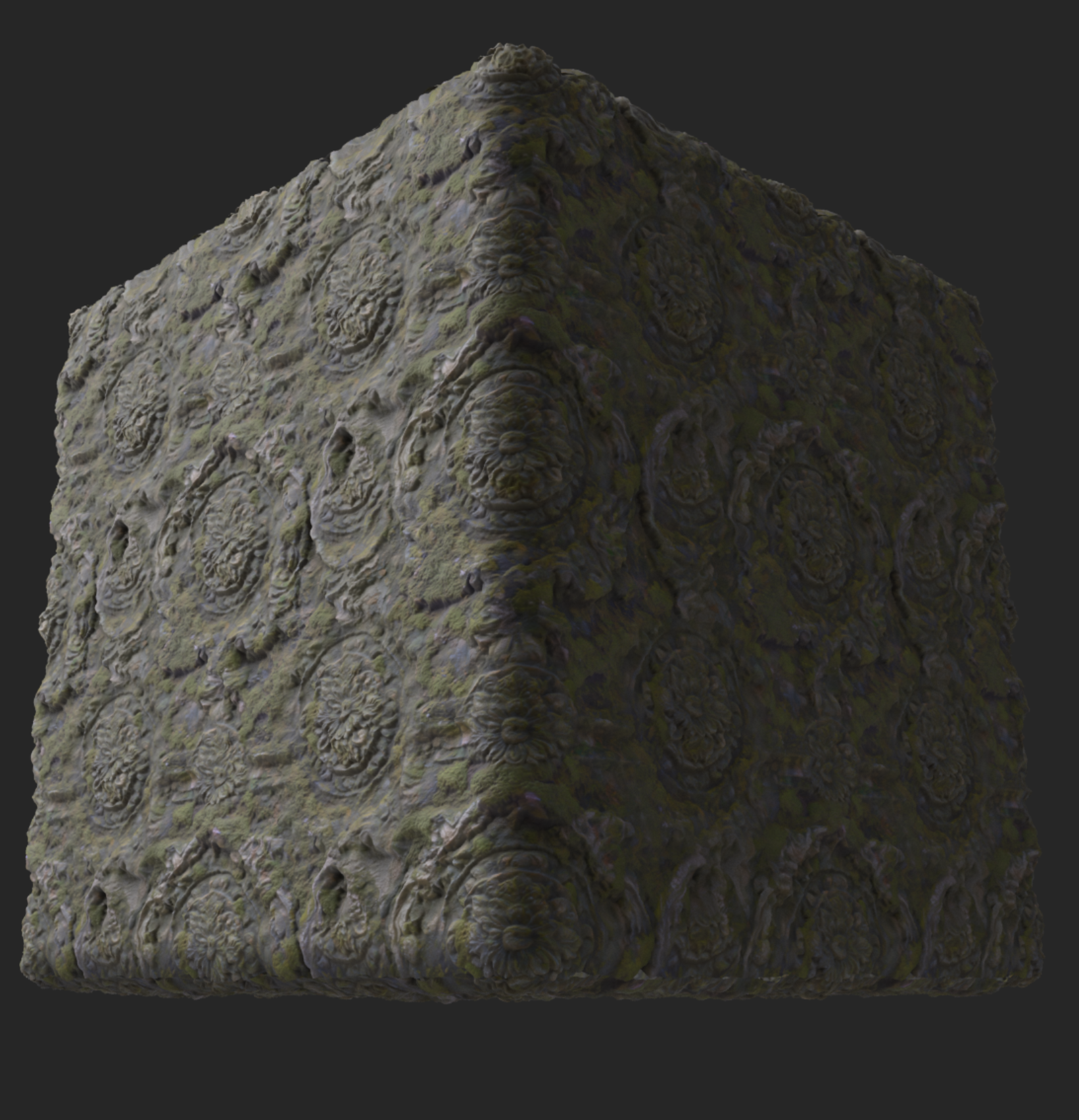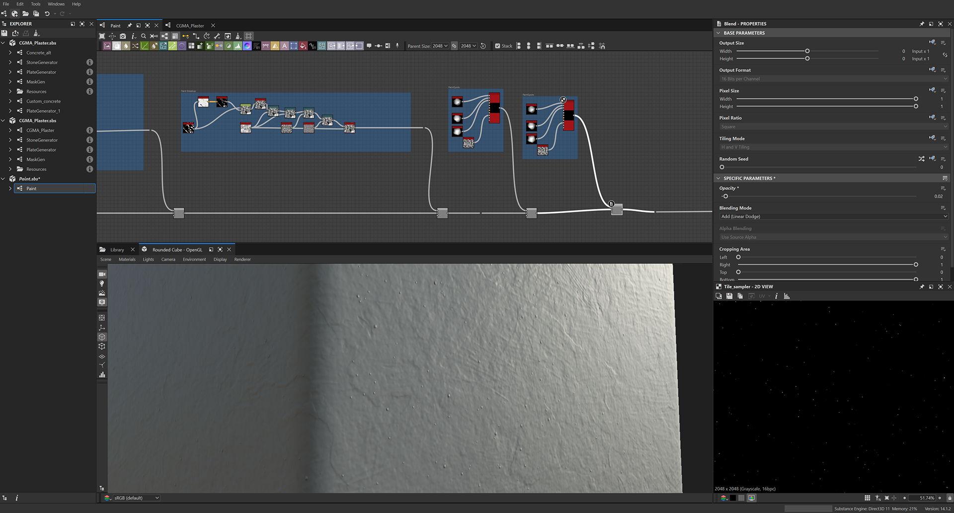 Week 1: Initial layers developed and captured via Substance Designer. The target for this initial set was inspired by Thai temple ruins, which are characterized by flaking/ layered concrete, brick, and plaster. Experimentation surrounded creating these targets and testing the limits of the tools.