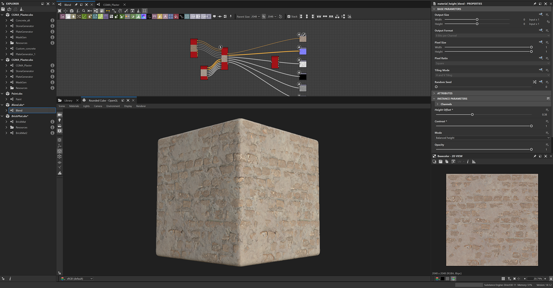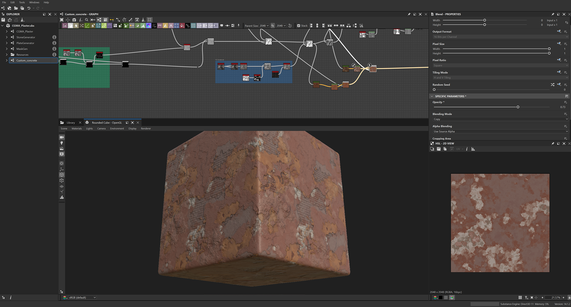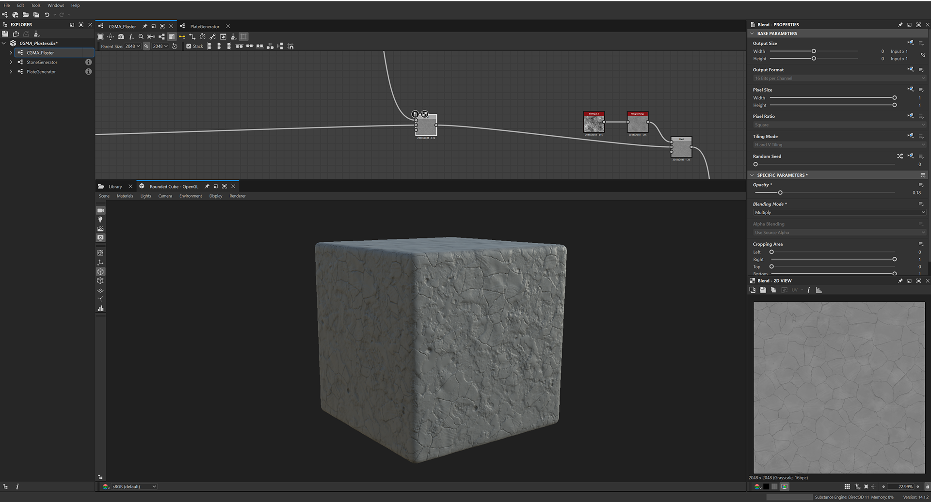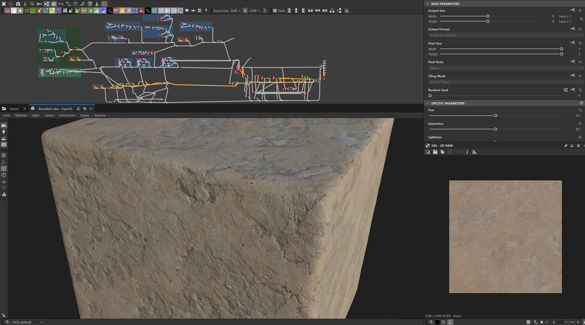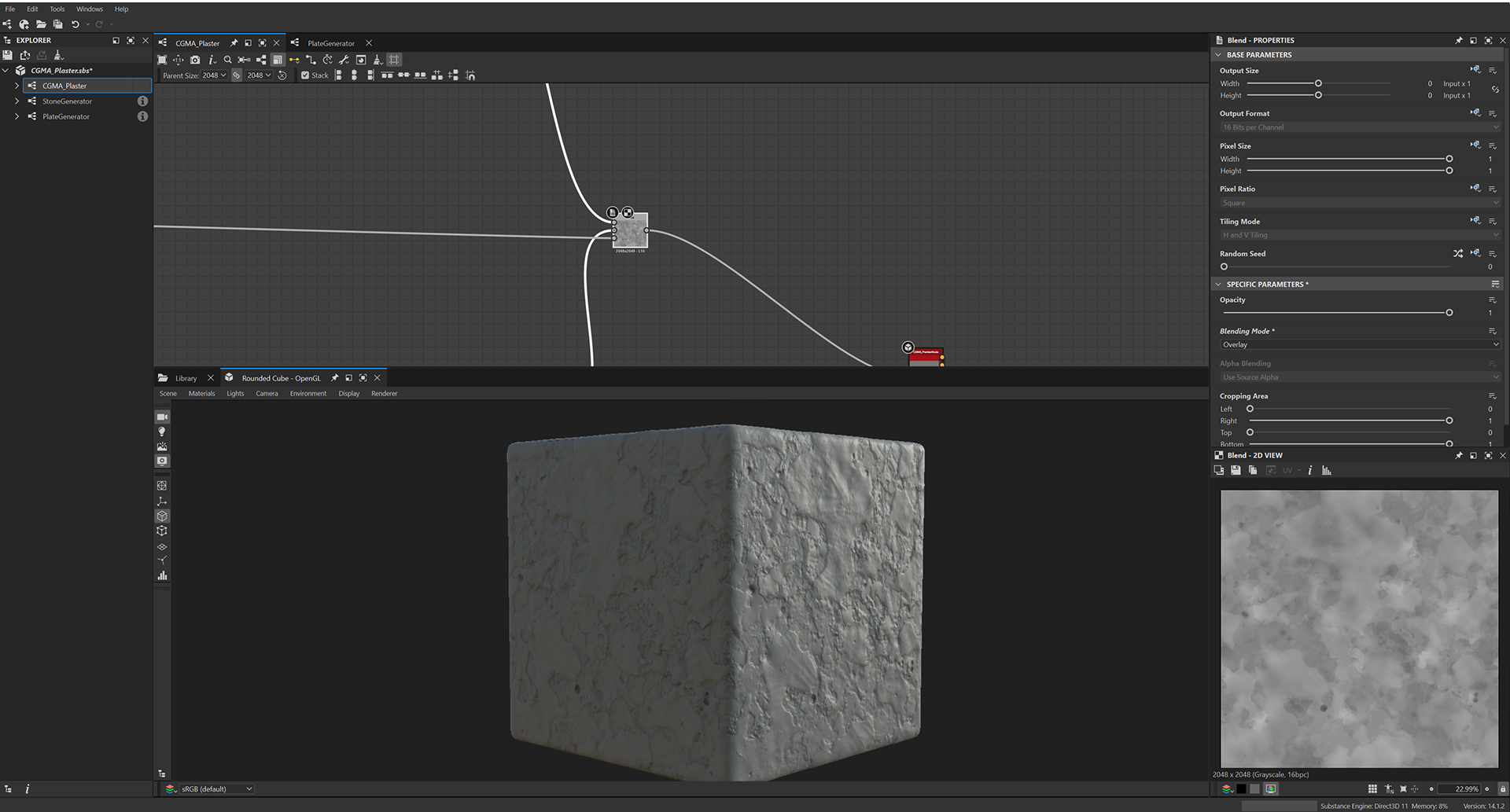 Week 1: Initial layers developed and captured via Substance Designer. The target for this initial set was inspired by Thai temple ruins, which are characterized by flaking/ layered concrete, brick, and plaster. Experimentation surrounded creating these targets and testing the limits of the tools.