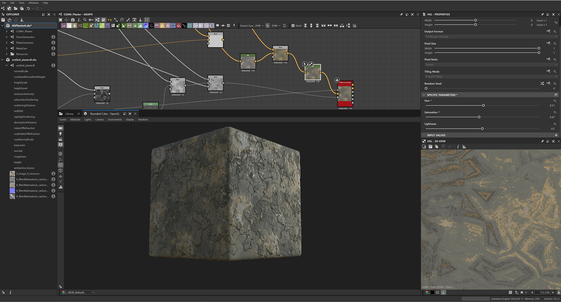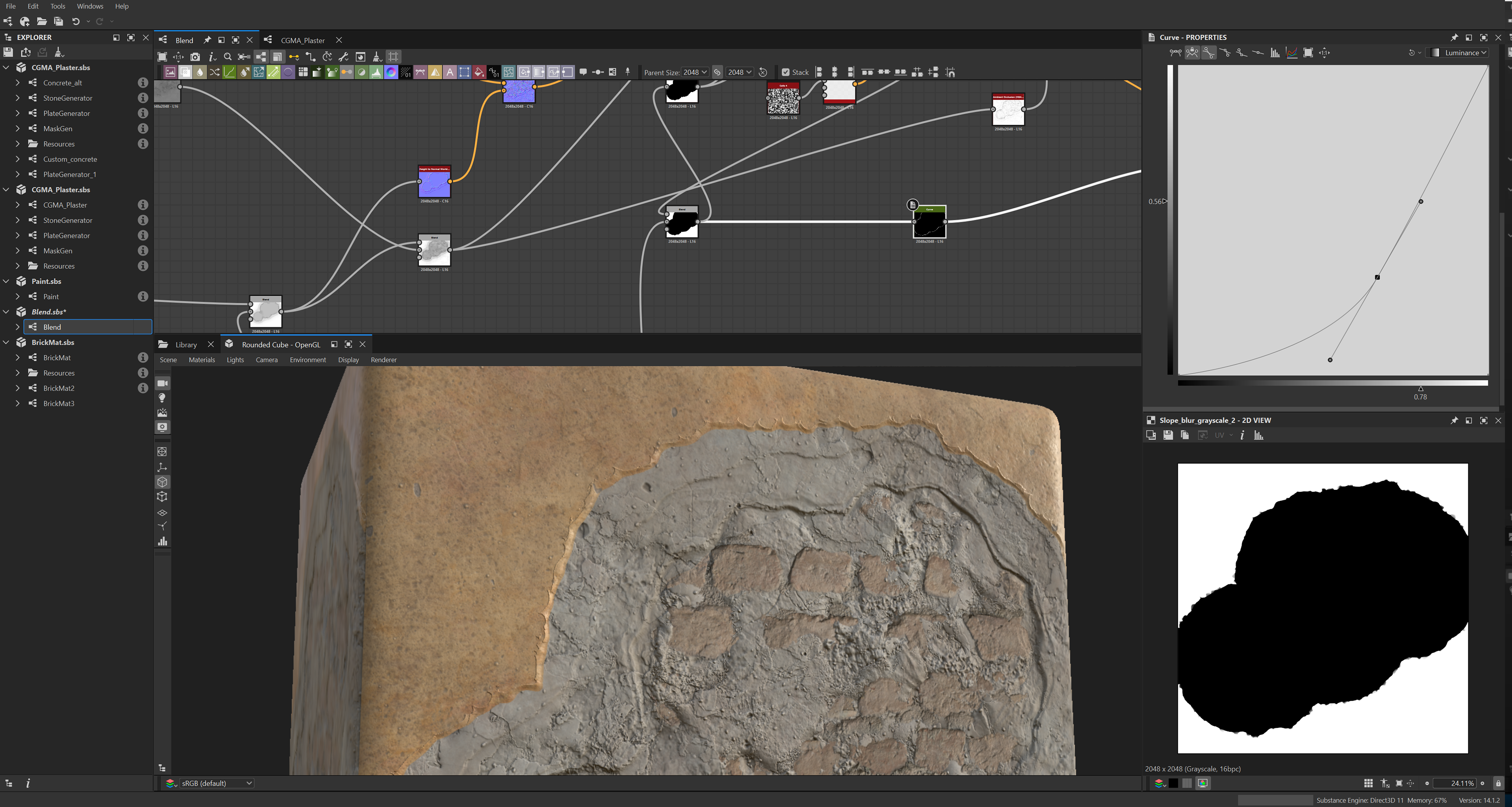 Designed from scratch as a part of an advanced materials course with CGMA these materials were made in Substance Designer and rendered in Marmoset. Below you'll find a gallery of the highlight results and curated process documentation.